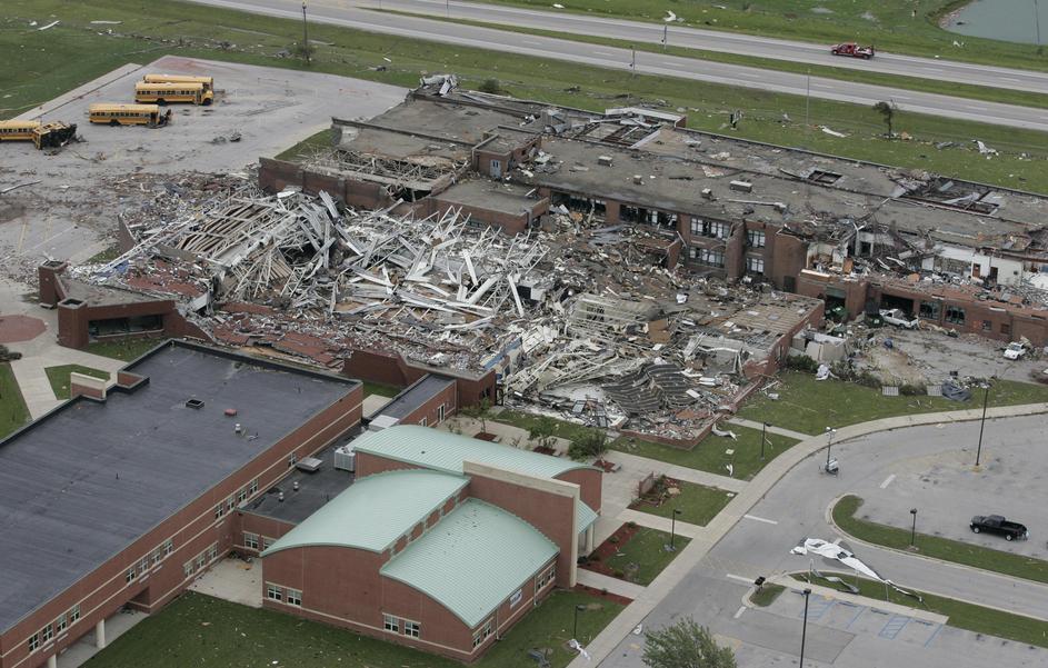 Povsem poškodovana srednja šola z okolico v Michiganu.