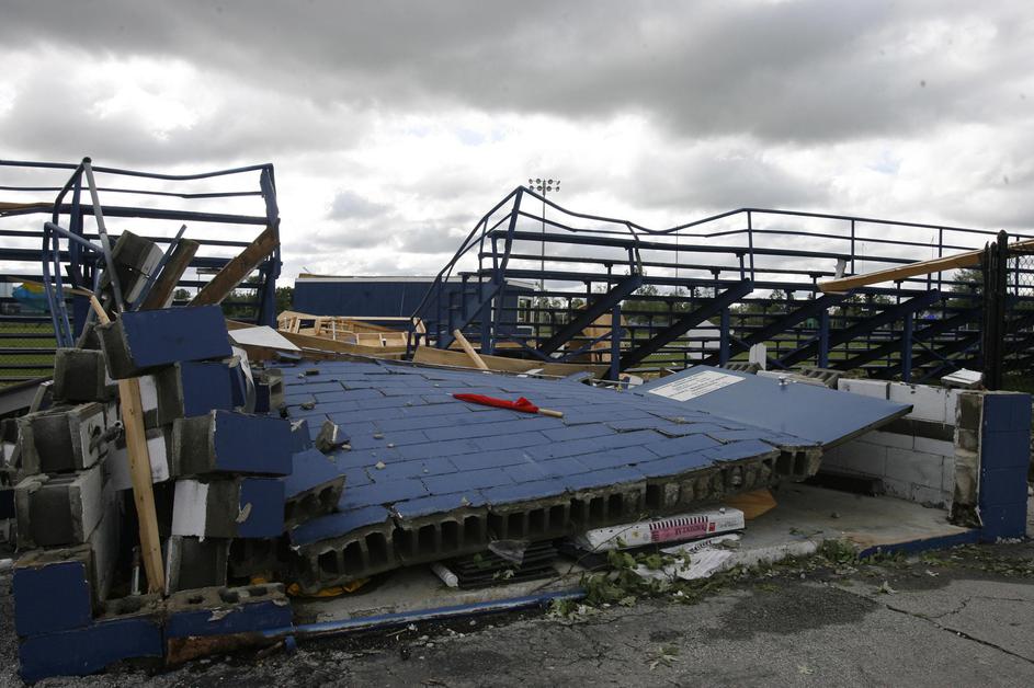 Poškodovane tribune nogometnega igrišča srednje šole v Michiganu.