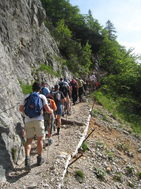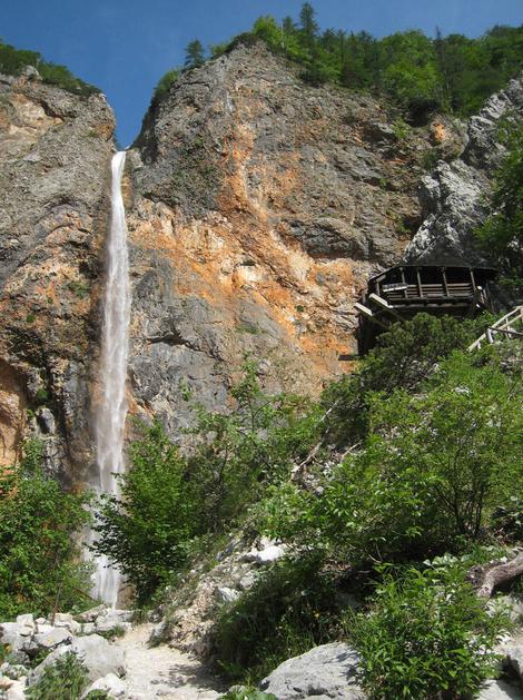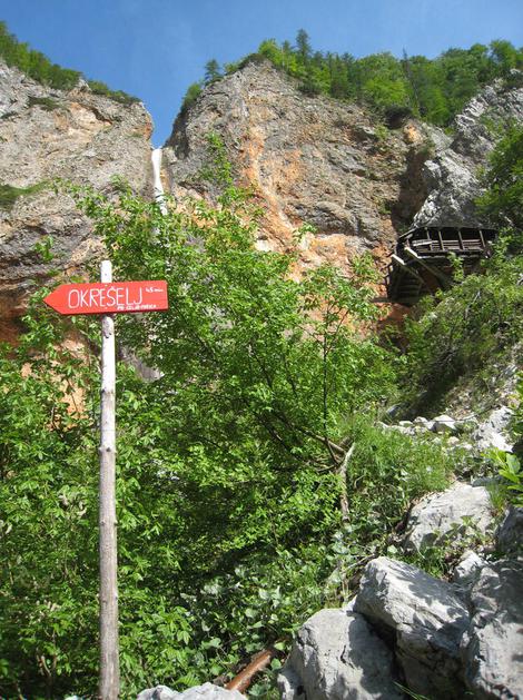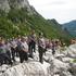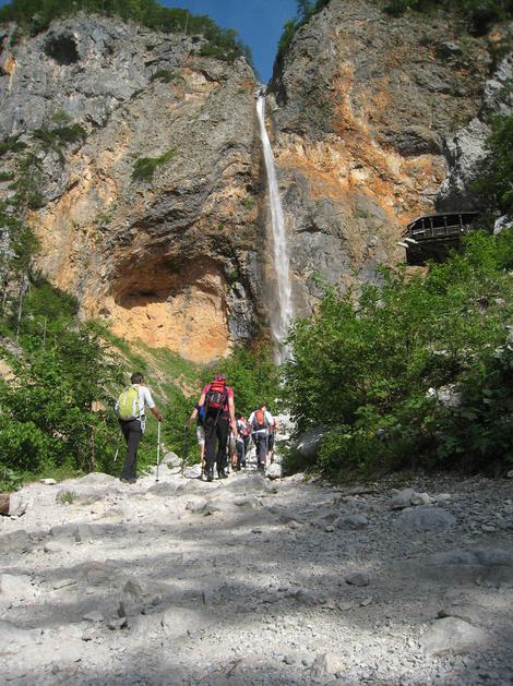 Udeleženci spominskega pohoda so na pot krenili mimo slapu Rinka.