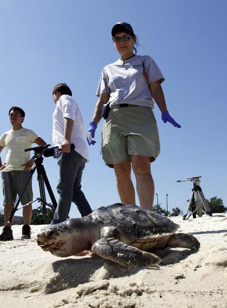 Fotografija, posneta včeraj. Kazen BP-ju za čiščenje madeža, ki se vsak dan povečuje za 2,4 milijon
