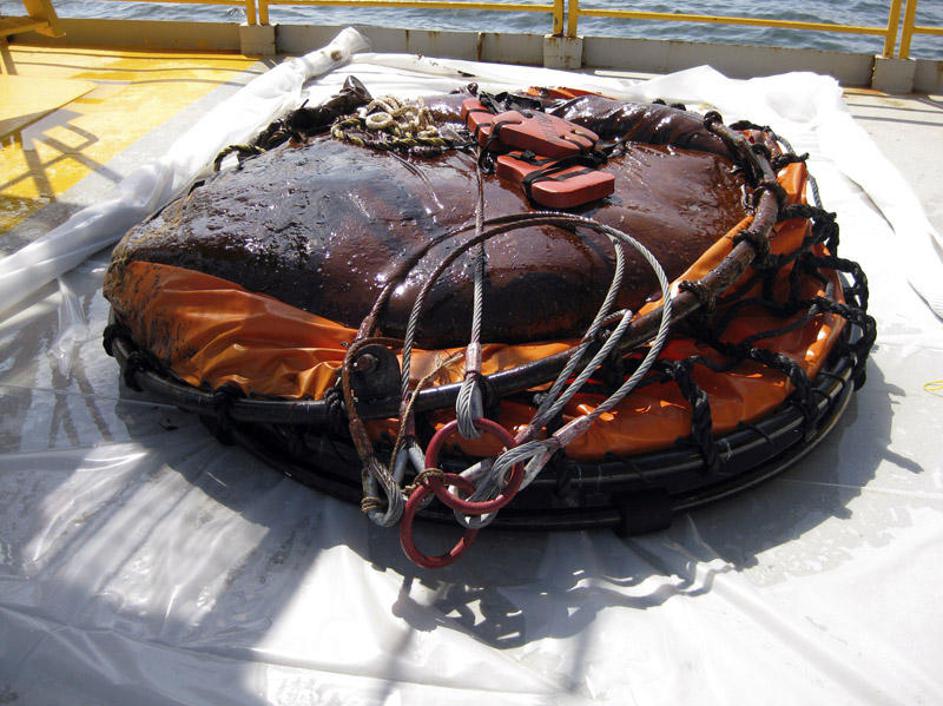 BP je s pokrovom, nameščenim na odrezanem delu poškodovane cevi, skupaj pobral le 5,6 milijona litro