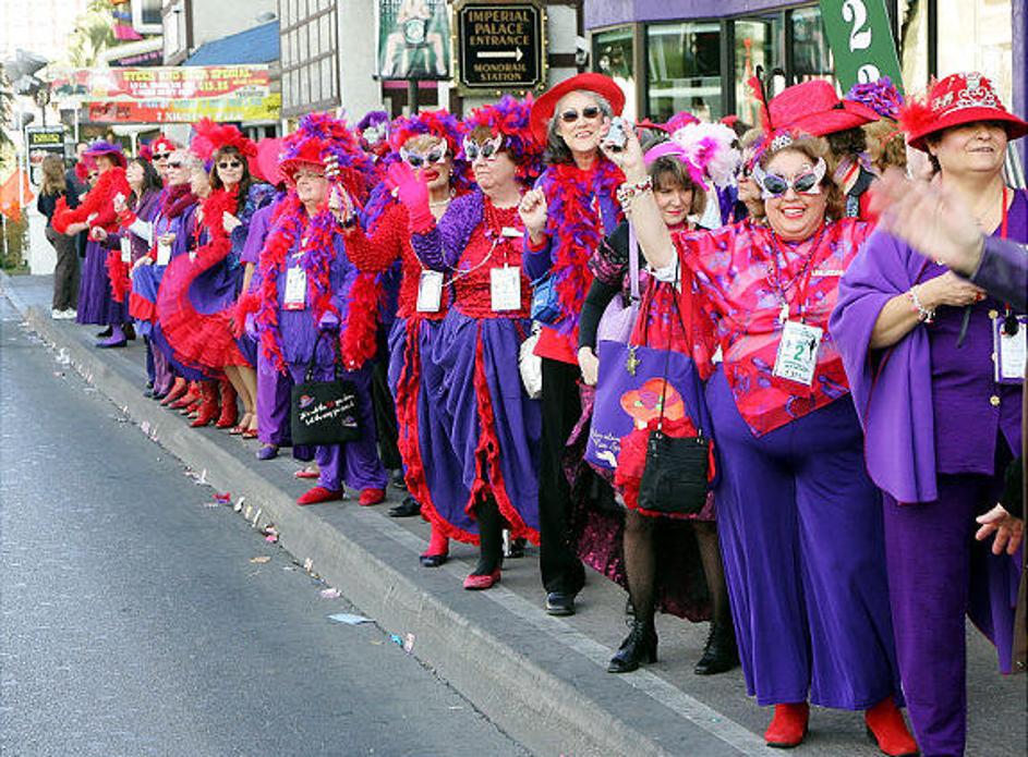 Okoli 1700 članov družbe Rdečih klobukov je v Las Vegasu ustvarilo najdaljšo vrsto na svetu.