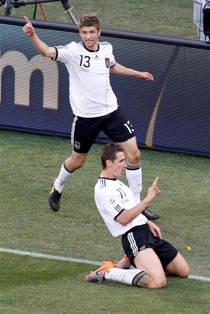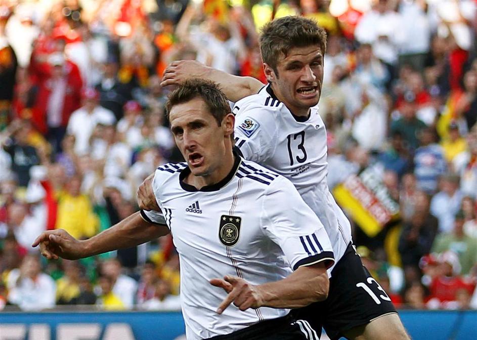 Miroslav Klose gol zdetek veselje proslavljanje proslava skok Thomas Müller Mull