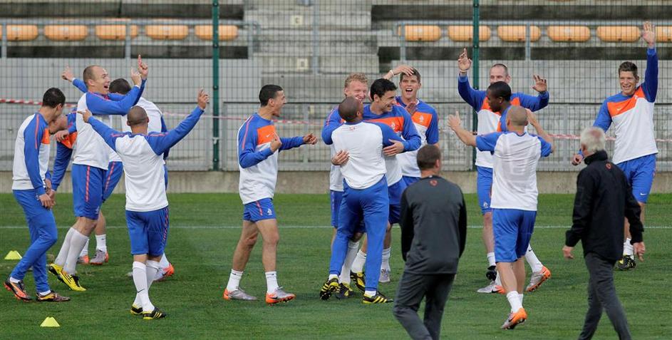 Tudi Nizozemci so ob pozdravih domačinov prispeli na trening.