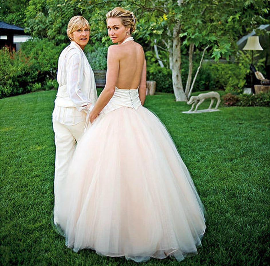 Ellen DeGeneres in Portia de Rossi sta si pred 19 gosti prstana nadeli 16. avgusta 2008 na svojem do