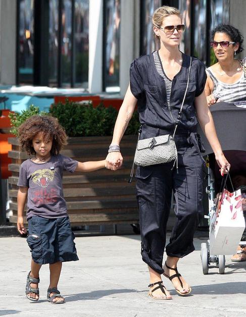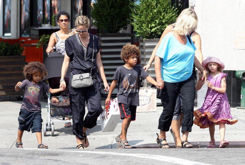 Heidi, ki je poročena s pevcem Sealom, s svojimi otroki, varuško, varnostnikom in mamo Erno.