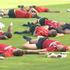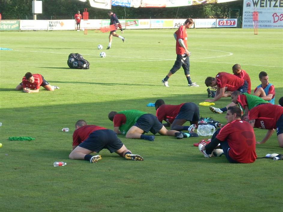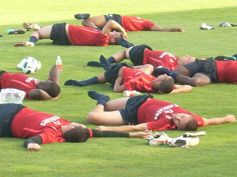 Konec treninga in obvezni "stretching" za boleče mišice.