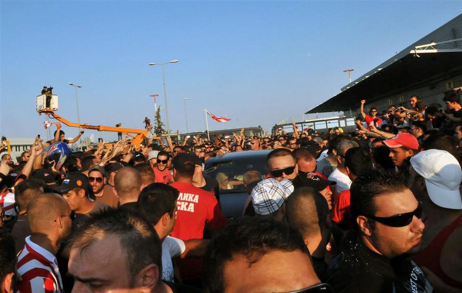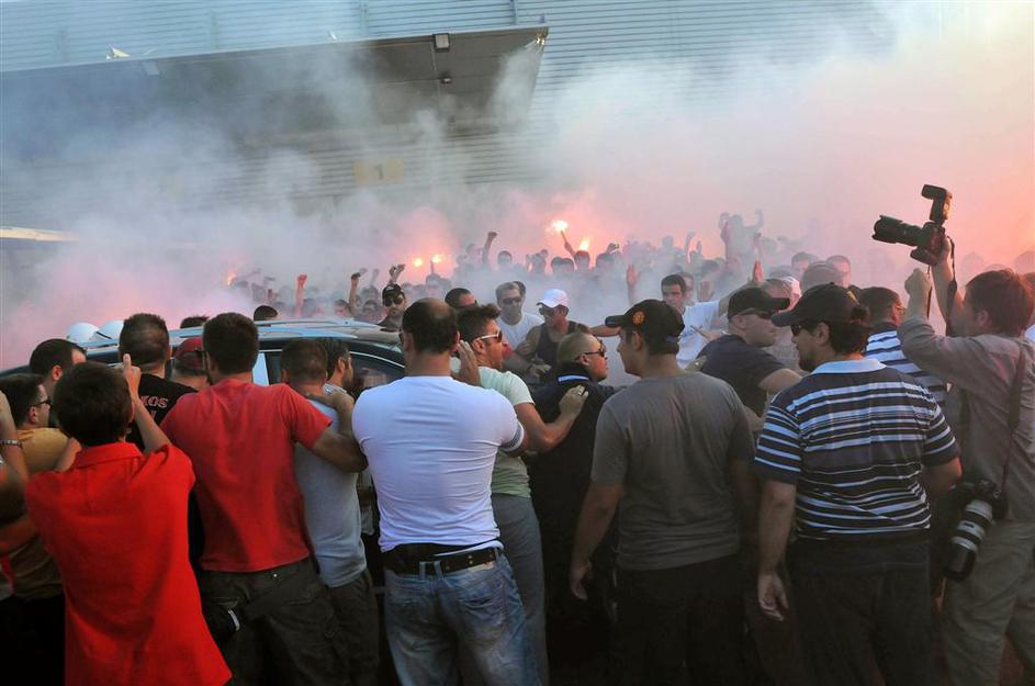 Navijači Olympiacosa so Albertu Rieri pripravili veličasten sprejem.