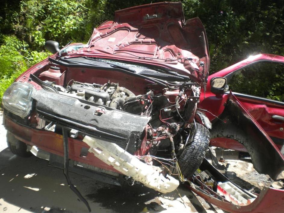 Voznica osebnega vozila se je zaletela v delovni stroj in pri tem utrpela lažje telesne poškodbe.