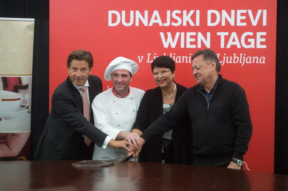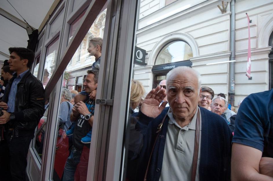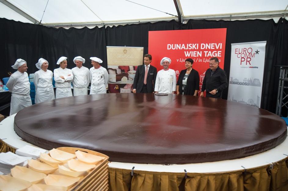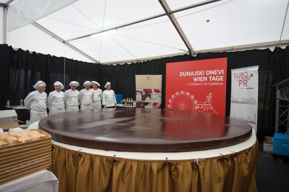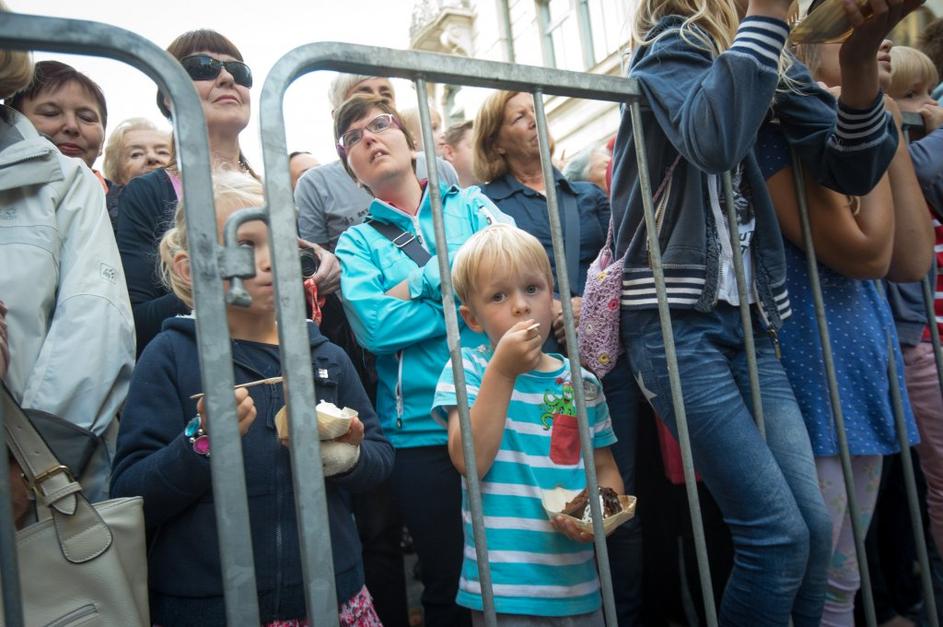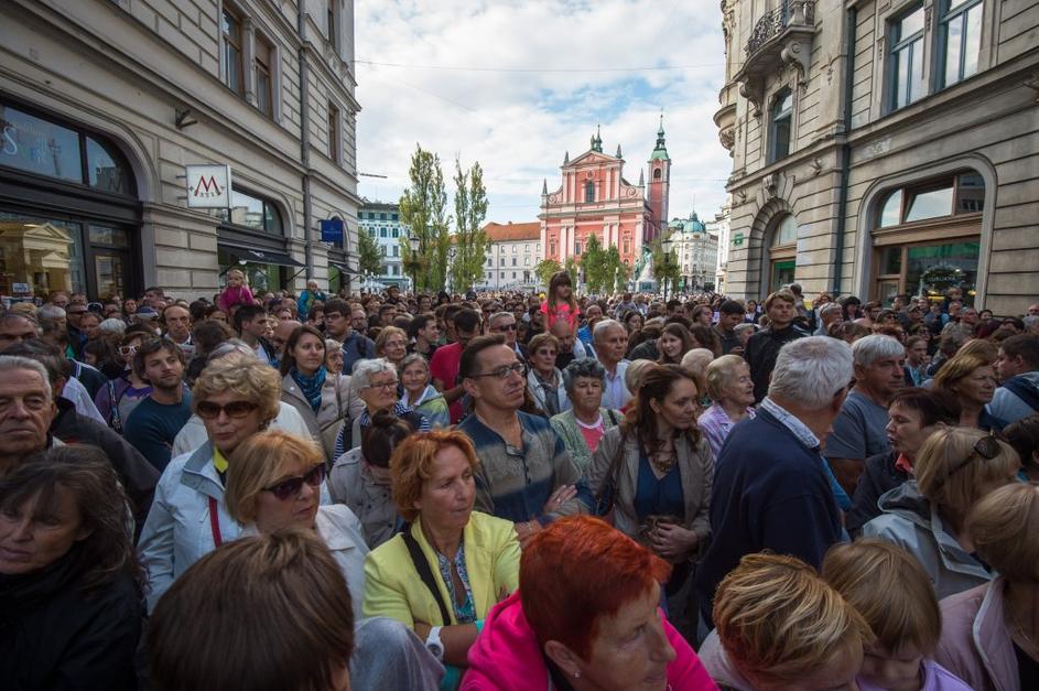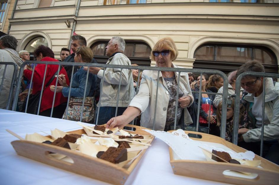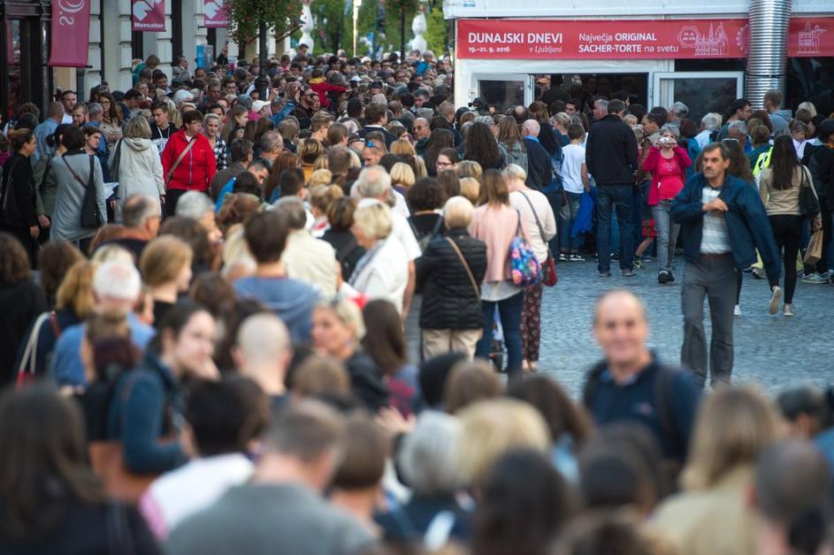 Množica ljudi čakala na košček torte