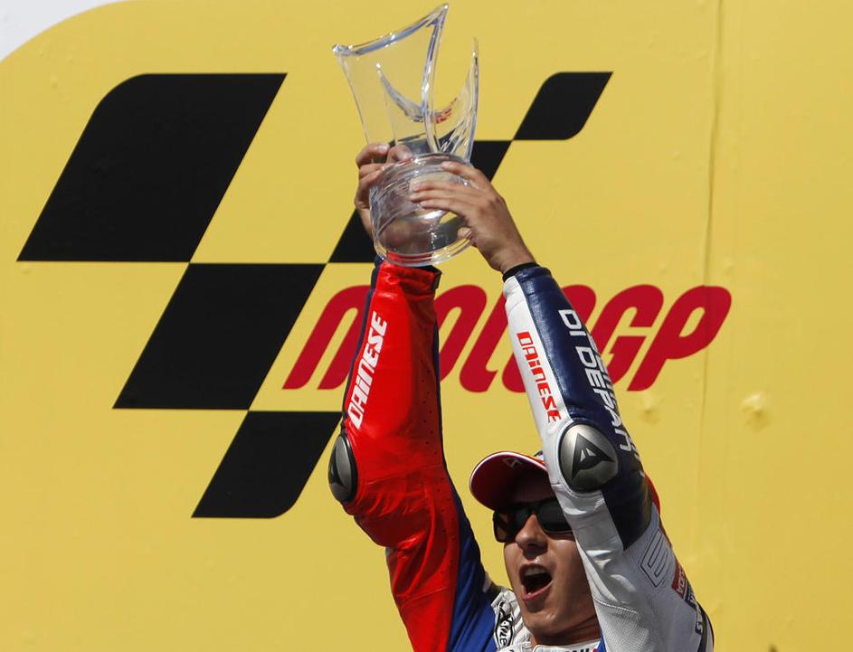 Jorge Lorenzo v trenutku, ko je prevozil ciljno črto. (Foto: Reuters)