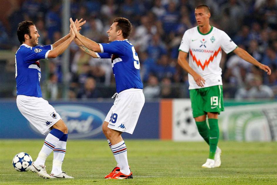 Sampdoria : Werder; Antonio Cassano in Giampaolo Pazzini