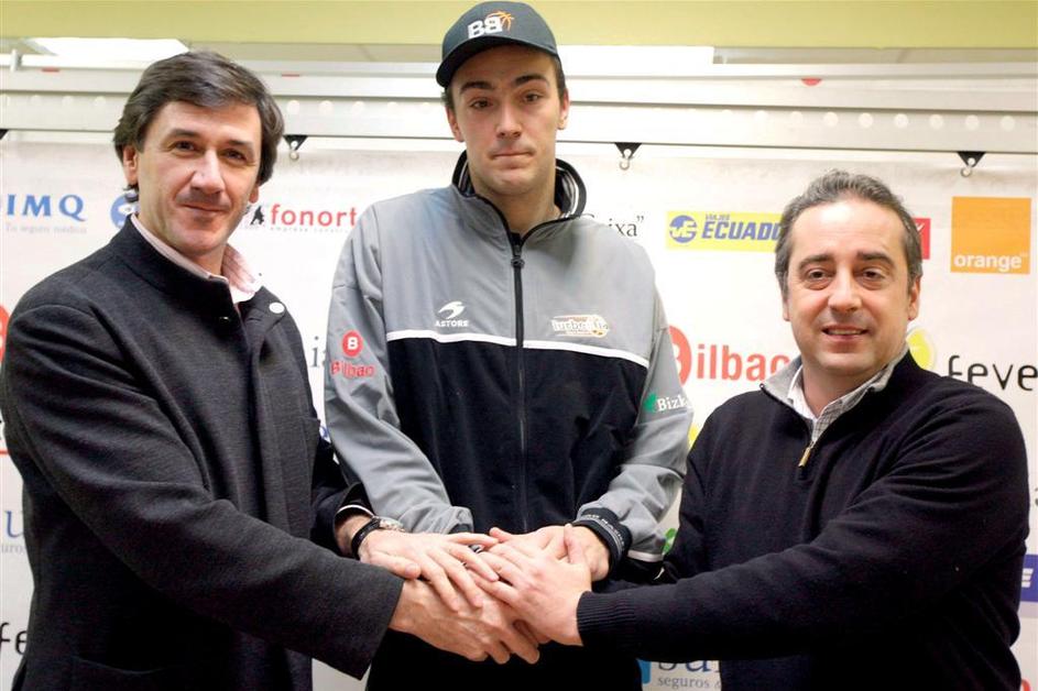 Ob lanskem podpisu pogodbe za Bilbao Basket skupaj s predsednikom kluba Jonom Davalillom in Txusom V
