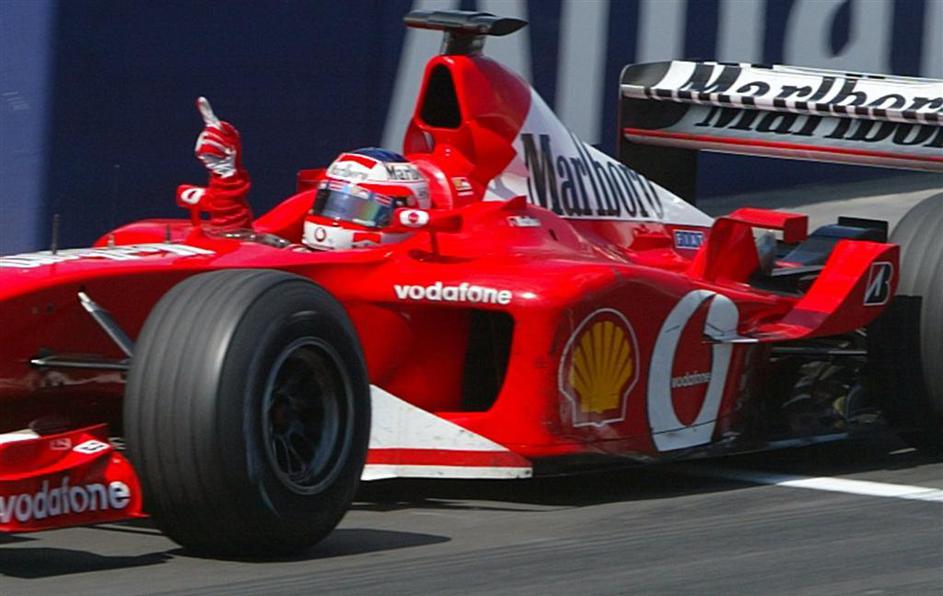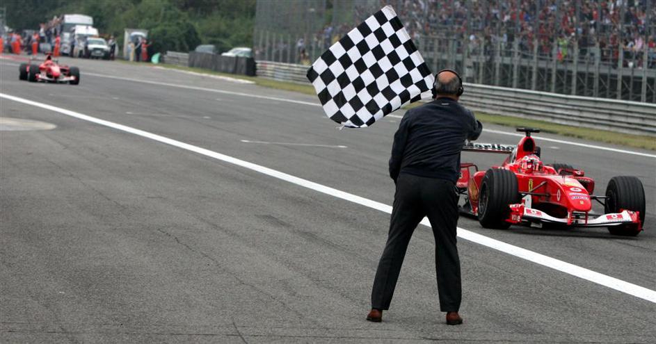 5. zmaga: VN ZDA, Indianapolis, 2002 (Ferrari) – Schumacher je pred ciljno črto spustil plin in zmag