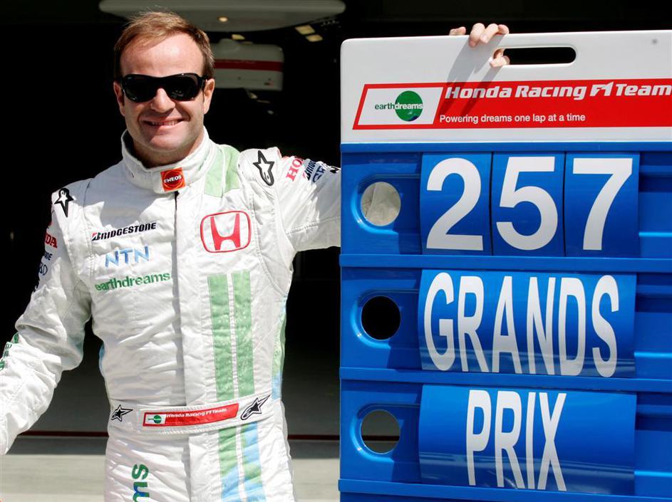 Rubens Barrichello danes. Je dirkač Williamsa. NJegova 18. sezona v formuli 1 naj še ne bi bila zadn