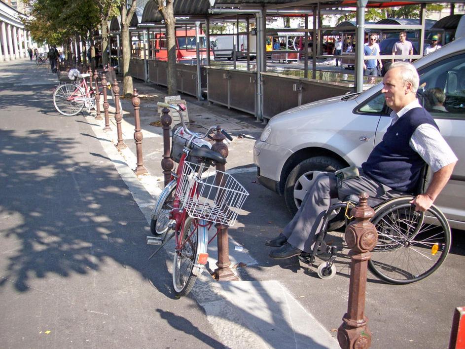 "Na prehodu je bilo zaklenjeno kolo, v bližini pa parkiran avto, kar je zaprlo pot invalidom,“ dodaj