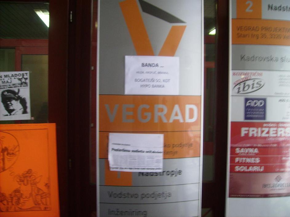 Vegrad, stavka delavcev, transparenti