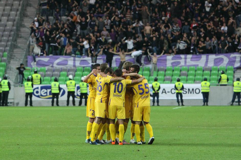Veselje Mariborčanov ob vodilnem zadetku.