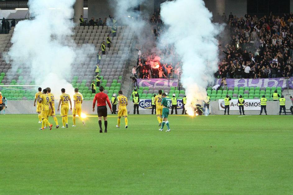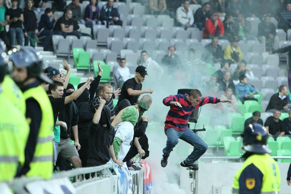 Navijači so varnostnikom in policistom povzročali kar nekaj težav. Še posebej je bilo burno po koncu
