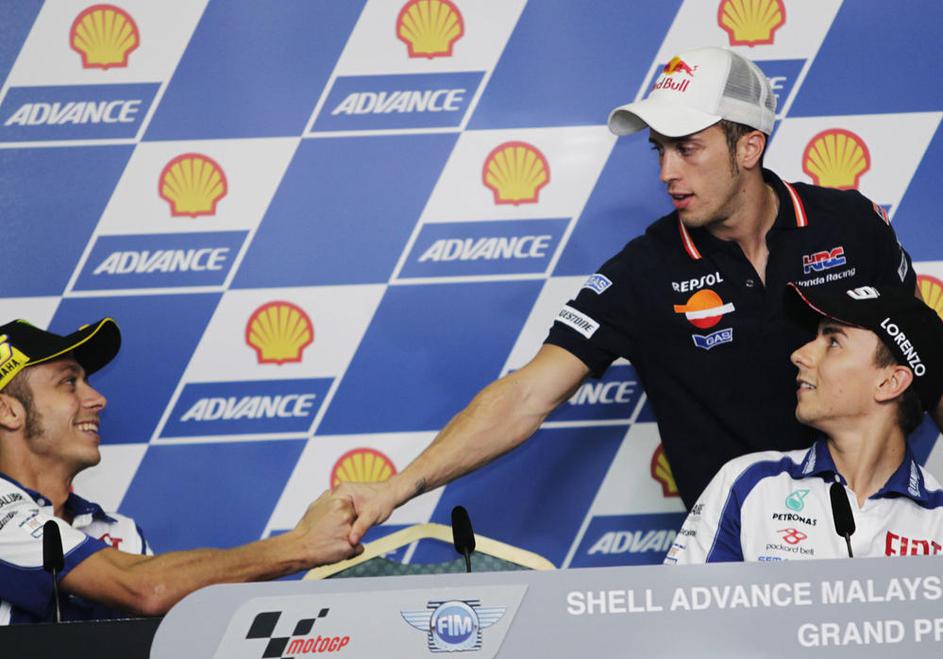 Španec (v sredini) na VN Malezije v Sepangu potrebuje le deveto mesto in naslov bo njegov, a Lorenzo