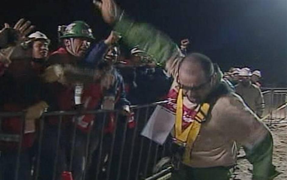 Florencio Avalos je prvi rudar, ki je prispel na površje. (Foto: Reuters)