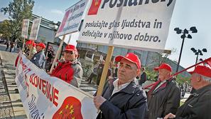 Upokojenci Pred parlamentom protestira le peščica Skupina članov Sindikata upokojencev Slovenije pred poslopjem državnega zbora protestira proti predlogu vlade za zamrzn…