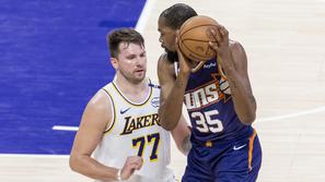 Superzvezdnik Dončićevi Lakersi del rekordnega posla v ligi NBA Eden najboljših strelcev v NBA zgodovini Kevin Durant se je v poslu, v katerega je bilo udeleženih rekordnih sedem mošt…