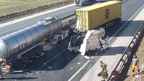 Dvakrat počilo Nesreča na avtocesti: Tovornjak zmaličil osebno vozilo Posredovati so morali v dveh nesrečah, ki sta se zgodili ena za drugo.