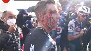 Video V cilju grda nesreča Remca, okrvavljeni Belgijec znova besnel Evenepoelu prva gorska etapa in skupno vodstvo ter tudi grda ureznina nad arkado.