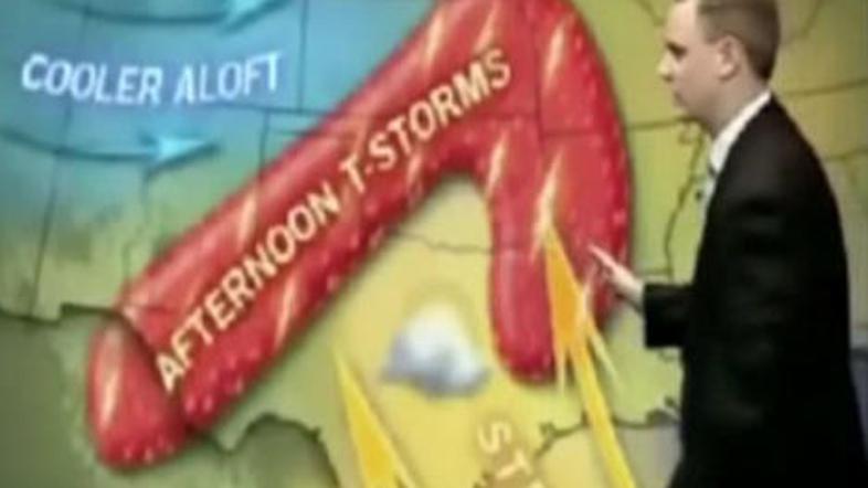 Čeprav neurje v Teksasu ni bilo eno izmed hujših, si ga bo zapomnilo mnogo državljanov. Na lokalni postaji KLST so se malce poigrali in prikazali neurje v obliki penisa. Voditelj se, kljub šali, ni zasmejal.