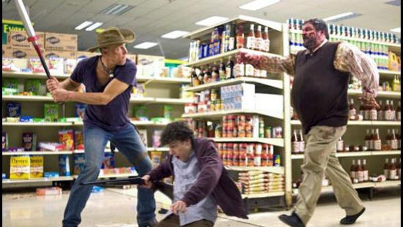 Dobrodošli v deželi zombijev (2009). Režija: Ruben Fleischer. Igrajo: Jesse Eisenberg, Woody Harrelson, Bill Murray, Emma Stone, Abigail Breslin.
