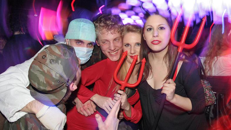 Na pustni torek so se študenti pravne fakultete zbrali v klubu nad mestom. Za najboljše maske so se potegovali pink panterji, aerobičarke, pilot in stevardesa ter varilec.
