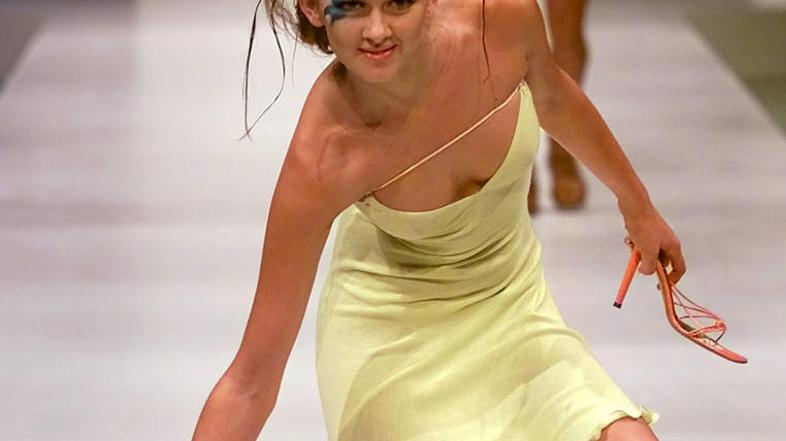 Visoke pete, premajhni ali preveliki čevlji, nevajenost obutve - prav vse je lahko povod za nezgode manekenk na modnih brveh. Pozorni fotografi pa poskrbijo, da nezgode ne ostanejo neopažene.