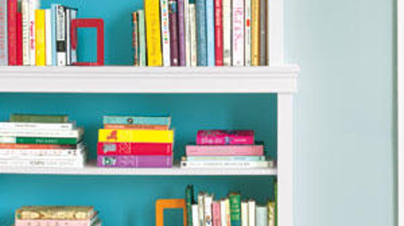Knjižnim policam dodajte barve – na stene za policami, z živobarvnimi detajli ali kar s knjigami s pisanimi, barvastimi platnicami. Nekaj idej poiščite v galeriji!