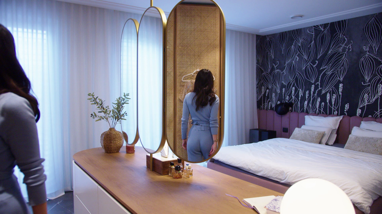 Govorilo se je, da je bilo stanovanje ob nakupu vredno okoli milijon in pol evrov. Impresiven je že vhod, kjer se čez steno razprostira velika steklena omara, v kateri se bohotijo čevlji in torbice vrhunskih blagovnih znamk ter gostom že takoj nakazujejo, da so vstopili v stanovanje, ki je urejeno do zadnjega kotička (fotografije v galeriji).