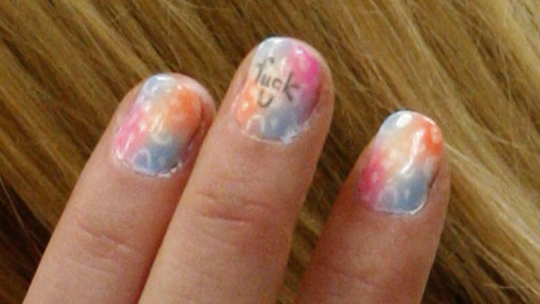 Zvezdnica, ki bo 20. julija začela prestajati 90-dnevno zaporno kazen, ker je kršila pogojno kazen v dveh primerih vožnje pod vplivom alkohola, je po končanem sojenju dvignila veliko prahu z napisom na svojem sredincu. LiLo je namreč med histeričnim jokom po razglašeni sodbi pokazala svoje domiselno pobarvane nohte z napisom: "Fu*k you" (Je*i se) na sredincu.