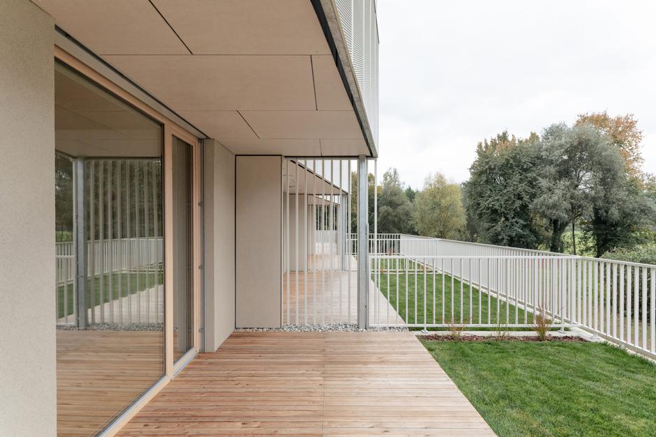 V objektu je 18 stanovanjskih enot, vsaka ima dostop na balkon oziroma teraso. Medetažna konstrukcija je izvedena z vidnimi križno lepljenimi ploščami, kar predstavlja veliko dodano vrednost za uporabnike. Balkoni so konstrukcijsko ločeni od osnovnega lesenega objekta, s čimer se preprečujejo potencialni toplotni mostovi.