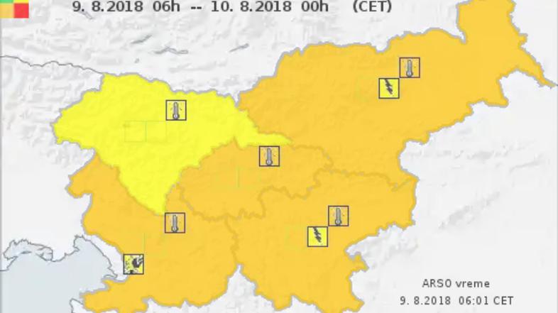 Še danes pa velja opozorilo zaradi velike toplotne obremenitve. Drugo najvišjo stopnjo pripravljenosti so na Arsu razglasili za vso Slovenijo z izjemo severozahodnega dela, kjer velja tretja stopnja.