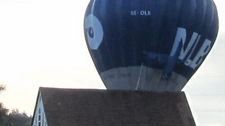 V Vojniku pri Celju se je eden od balonov zaletel v hišo in tako zaključil svojo kratko pot na balonarskem festivalu.