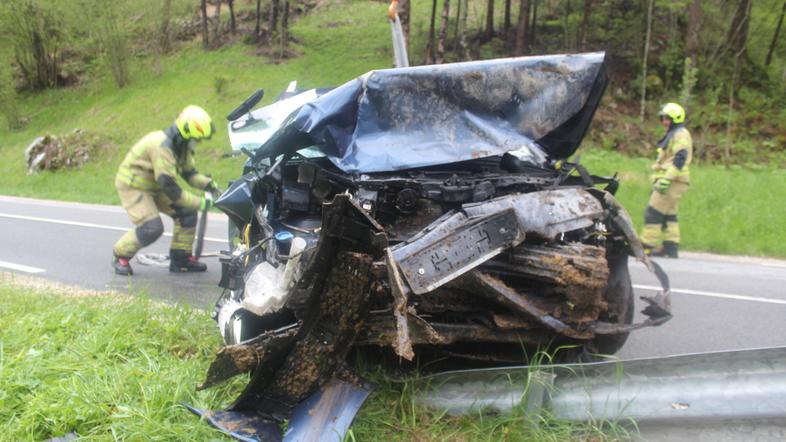 Po poročanju uprave za zaščito in reševanje je do nesreče prišlo ob 17.25, osebno vozilo pa je zapeljalo z vozišča v hudournik in se pri tem prevrnilo na bok.