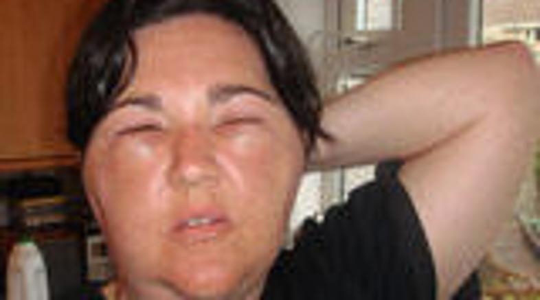 Kar naenkrat je začela težko dihati, vrat ji je močno zatekel, poleg tega pa je tudi začasno oslepela. Takoj je odšla k zdravniku, ki mu je s pomočjo steroidov in antihistaminikov uspelo zaustaviti otekanje glave in vratu.