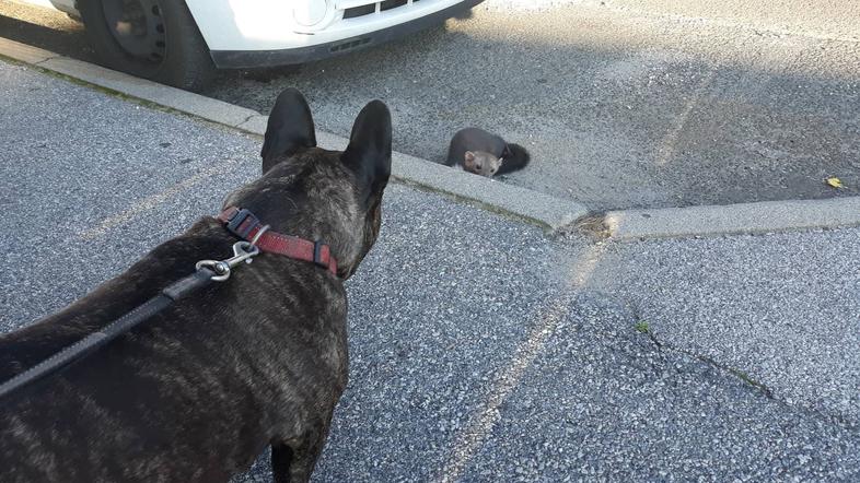 Med zgodnjejutranjim izvajanjem meritve hitrosti pod Pohorjem, se je do njih komaj še privlekla kuna belica. "Zdela se je poškodovana, vendar ne vidno," pravijo. Da je ne bi kdo povozil, so jo spravili z vozišča, domačini pa so priskrbeli kartonsko škatlo zanjo, vodo in hrano.