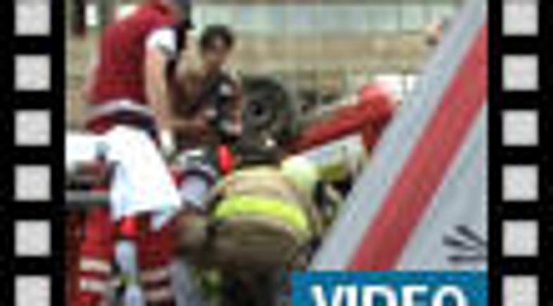 Ob prihodu na kraj nesreče se je v prvi vrsti potrebno pogovoriti s ponesrečencem, ki v tem primeru pove, da ne čuti nog, iz česar reševalci sklepajo, da ima poškodovano hrbtenico. Premikati ga ne smejo. Na vrsto pridejo gasilci in začnejo razbijati šipe in pripravljati škarije za rezanje pločevine. Reševalci medtem ponesrečenca za silo oskrbijo in ga med čakanjem, da gasilci opravijo svoje, ves čas skrbno nadzorujejo.
