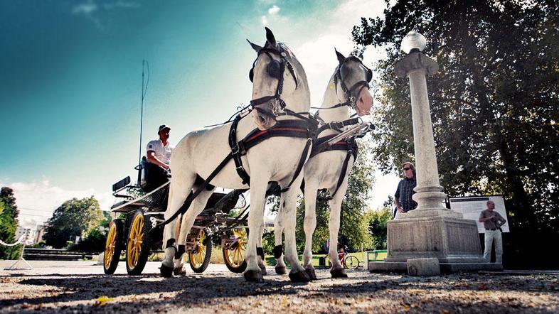 Prijetna septembrska sobota je kot naročena za druženja v naravi. V prestolnici, kjer ta konec tedna poteka rekreacijski vikend, danes tudi možnost prevoza s kočijo, ki jo vlečejo lipicanci.