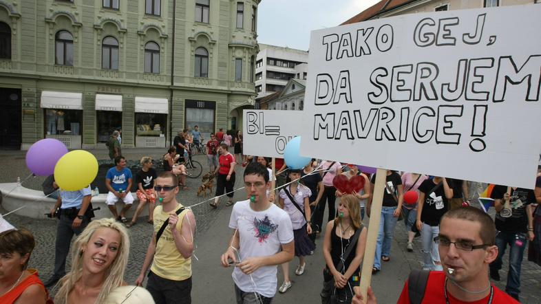Udeležence parade je večkrat nagovoril tudi gejevski aktivist Mitja Blažič. "Ponosen sem na našo svobodno, emancipatorno seksualnost, na našo trdoživost in odločnost, na naše uporništvo in kritično držno," je poudaril.