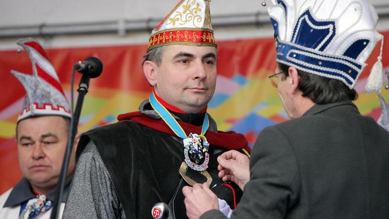 Današnja prireditev se je začela s predajo mestne oblasti. Ta je šla iz rok ptujskega župana Štefana Čelana karnevalskemu princu Bernardu Ptujskemu.