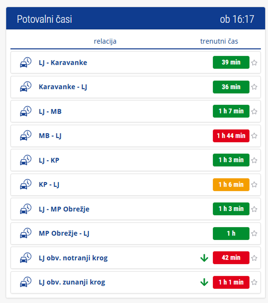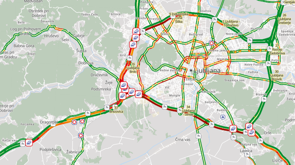 Podatki o potovalnih časih pa razkrivajo, da je okrog Ljubljane pravi prometni kolaps. Slika kaže, da je najhuje na južni obvoznici proti Dolenjski. Za zunanji krog bi voznik potreboval uro in minuto, kar je skoraj toliko, kot od Ljubljane do Kopra, pred nekaj minutami pa je bila vožnja okrog Ljubljane celo daljša kot pot do Kopra. Je pa še vedno hitreje priti z Obrežja do Ljubljane. Kadar ni gneče, pot po obvoznici okrog Ljubljane traja manj kot dvajset minut.
