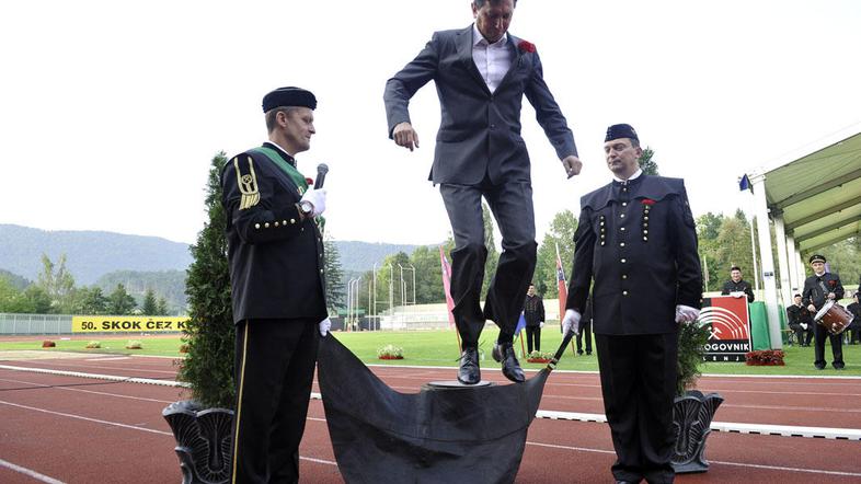 Ob rudarskem prazniku v Velenju je na mestnem stadionu častni 50. skok čez kožo z geslom: "Najprej bom skočil, potem pa rekel hop," opravil predsednik vlade Borut Pahor.