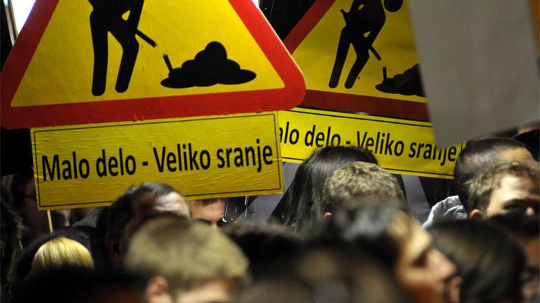 Pred ministrstvom za delo, družino in socialne zadeve se je zbralo od sto do dvesto študentov, ki so z napisi Malo delo – Veliko sranje protestirali proti predlogu zakona o malem delu.