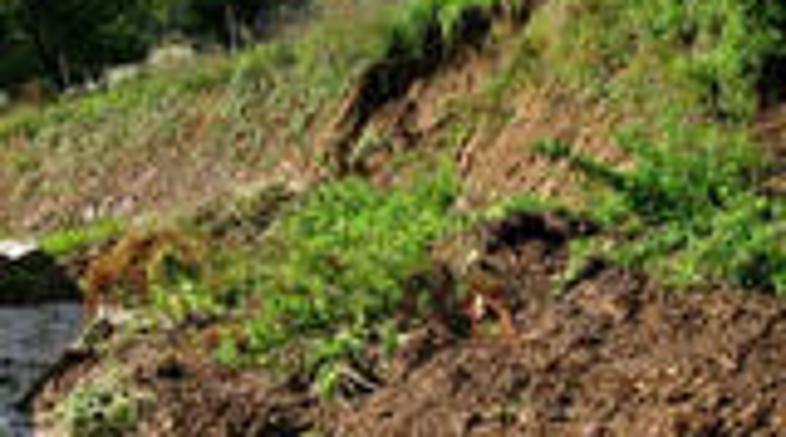 Zemeljski plaz v velikosti 50x100 metrov in globok štiri metre je v četrtek začel spet drseti.